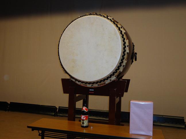 大太鼓にお神酒をお供え。